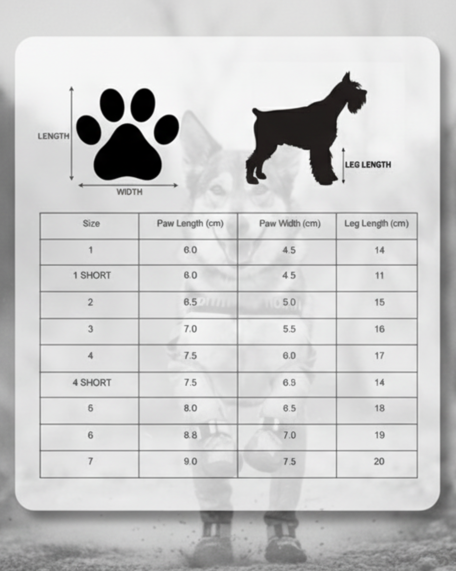 Dog Boot Size Chart